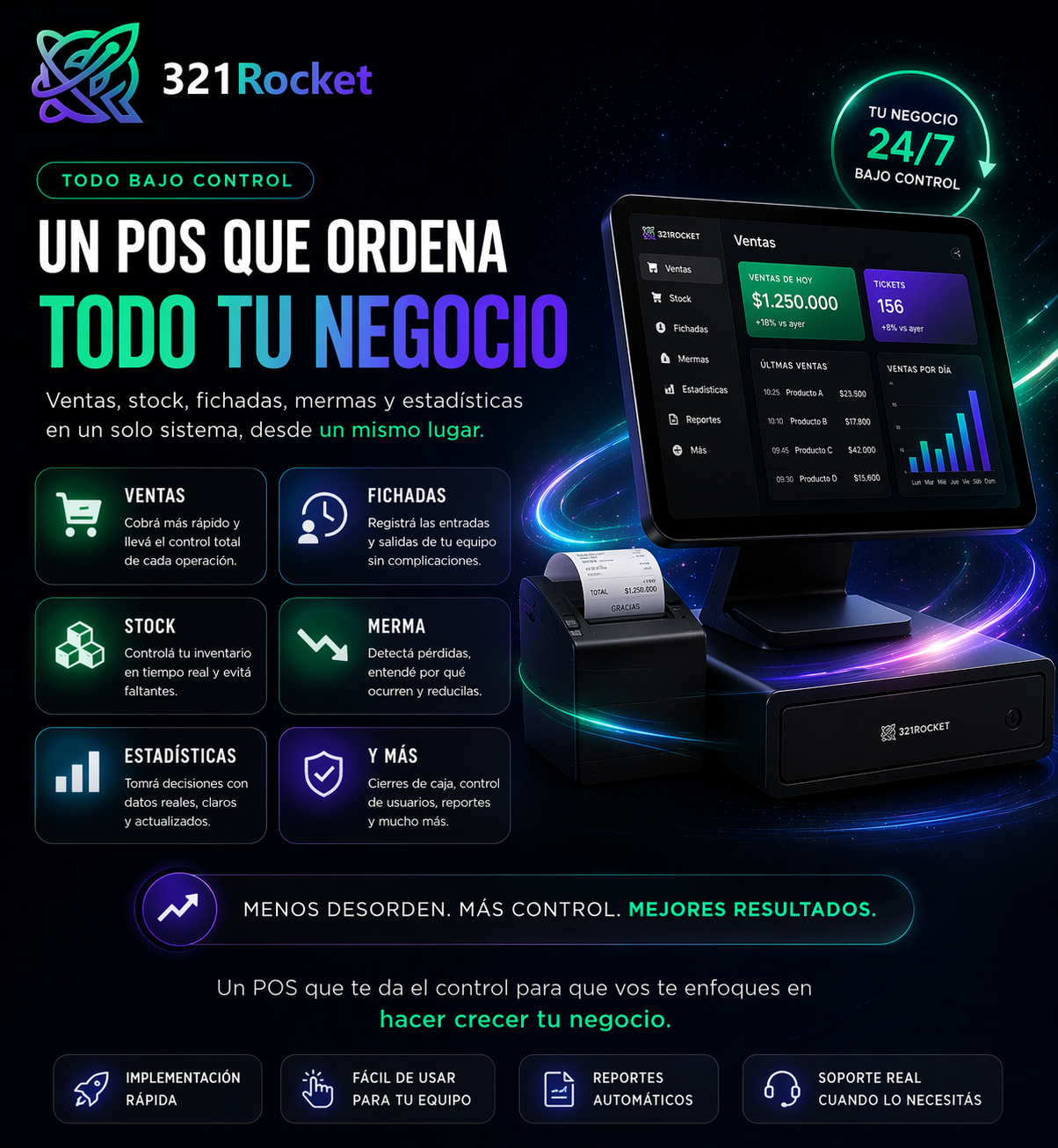 Software, ventas, stock, fichadas, insumos, estadisticas y todo lo que necesitas para conocer tu negocio en profundidad